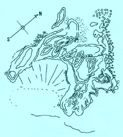 熱海で一番スケールの大きな、また、ソフトコーラルが素晴らしい、名物スポット。千畳敷のドロップオフを3〜4m離れてゆっくり移動しながら眺めると、その素晴らしさを一層楽しめます。ただし、潮の流れが速いときには、よほど脚力に自信のあるダイバーでも流される程なので、要注意。