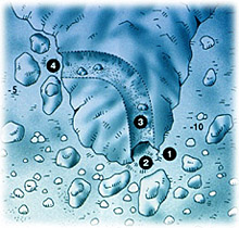この洞窟は、錦ヶ浦から続く絶壁の海岸線の途中から、水深10mの海底へ三日月型の亀裂が入ってできたものです。