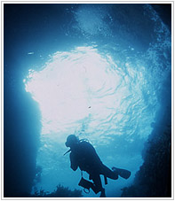 それほど距離のあるトンネルではありませんが、出口の光が見えるとなぜほっとするのは気のせいでしょうか???出口の幅は広く、水深が浅いので水面は波の様子がよく見えます。 急浮上しないようにBCやエアは要チェック。出口付近の壁面にもウミウシやエビ・カニの仲間がいろいろ見られます。