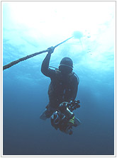 船首の先端にブイが打ってあるのでボートをそこに止めてエントリー、水深20mほどロープに沿って潜降します。